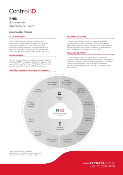• Configuração de horários complexos: banco de horas, horas extras, feriados etc.
